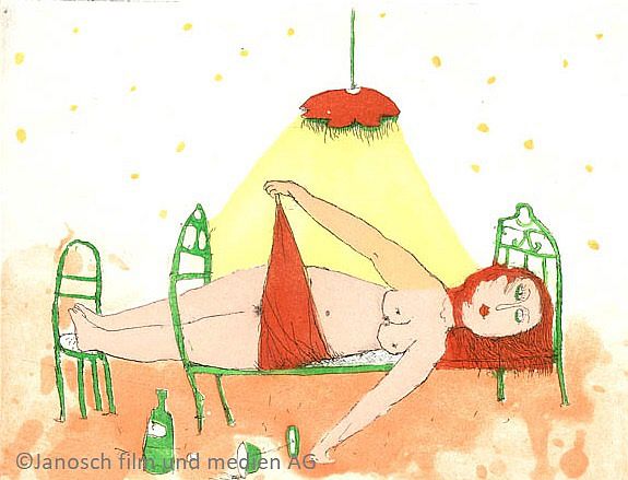 Janosch "Hing der Himmel nicht voller Engel" Mischtechnik 25 x 37cm