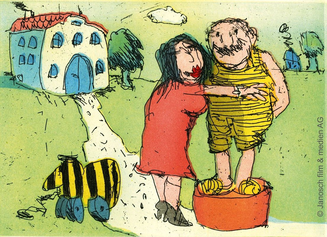 Janosch "Ich habe den Bär geheiratet das freut ihn" Radierung 50 x 60 cm