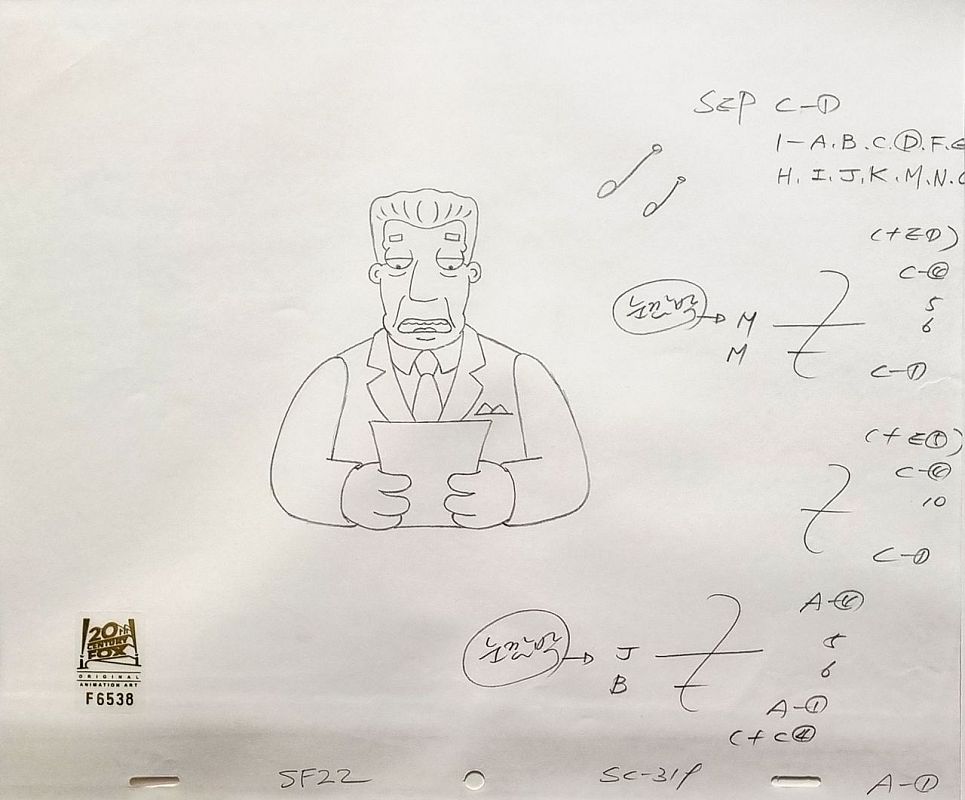 Als Teil des sogenannten Storyboards wurden gewisse Szenen per Hand skizziert. Vorzeichnungen und Reinzeichnungen mit Notizen über "Kameraschwenkung", Monologen und weiteren Bewegungen sind ebenso sichtbar wie die Einspannlöcher. An den vielen Details und klarer Linienführung ist gut ersichtlich, wie aufwendig die Produktion einer solchen Serie zu analogen Zeiten war.